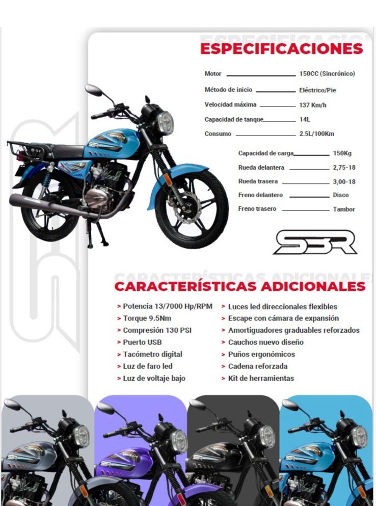 La SBR150 combina un diseño aerodinámico con un motor ágil y eficiente, ideal para moverte con estilo en la ciudad o sentir la adrenalina en carretera. Su potencia y maniobrabilidad la convierten en una opción perfecta para los amantes de la velocidad.